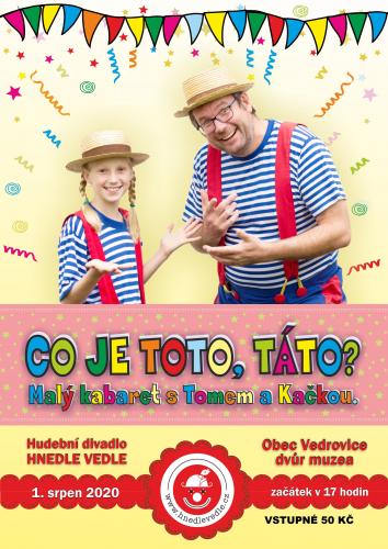 Obec Vedrovice pořádá pro děti představení od hudebního divadla Hnedle Vedle s názvem Co je toto, táto? v sobotu 1.8.2020 od 17 hodin na dvoře muzea ve Vedrovicích.