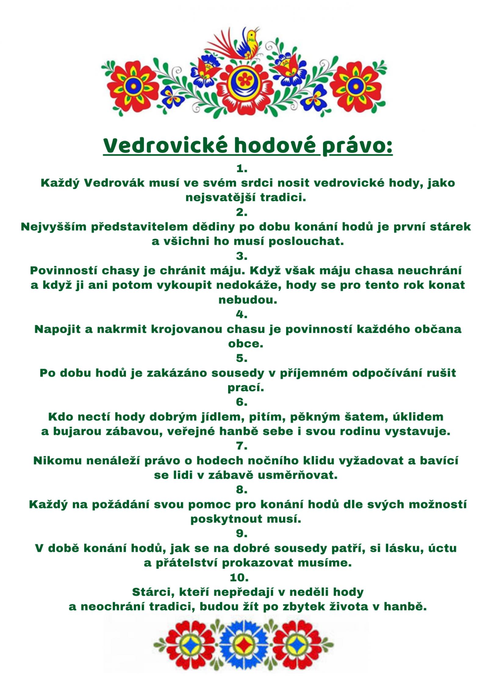 Obec Vedrovice a mladá chasa zve na tradiční krojované rozmarýnové hody 12.9.- 13.9.2020 ve Vedrovicích na návsi.