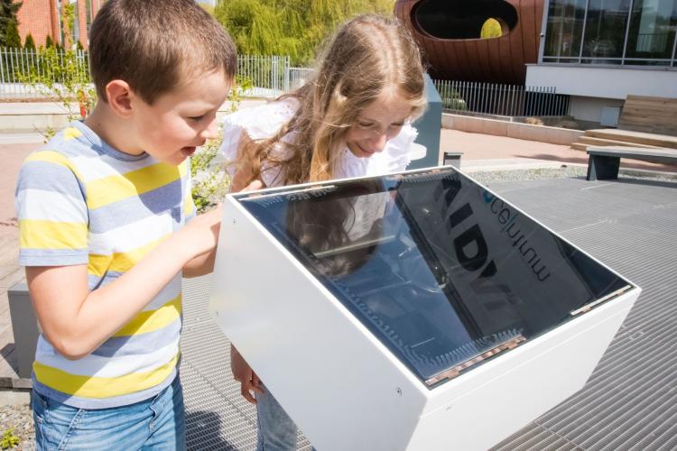 Na čerstvém vzduchu si vyzkoušíte i další exponáty jako například obří uši, Pascalovu fontánu, hučící kámen, Archimédův zákon nebo malování slunečními paprsky.