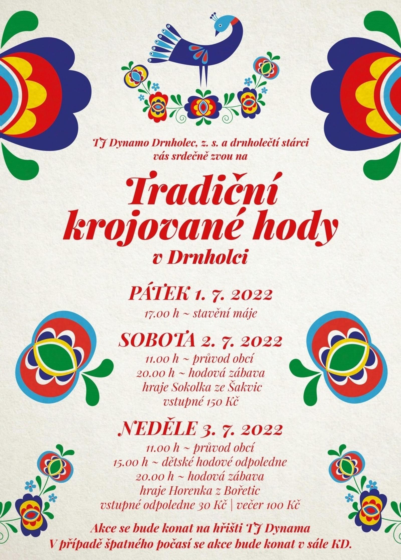TJ Dynamo Drnholec, z.s. a drnholečtí stárci vás srdečně zvou na Tradční krojované hody v Drnholci.
