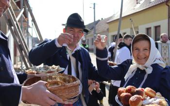 Oslava sklizně s tradičním dožínkovým průvodem ve strážnickém skanzenu.