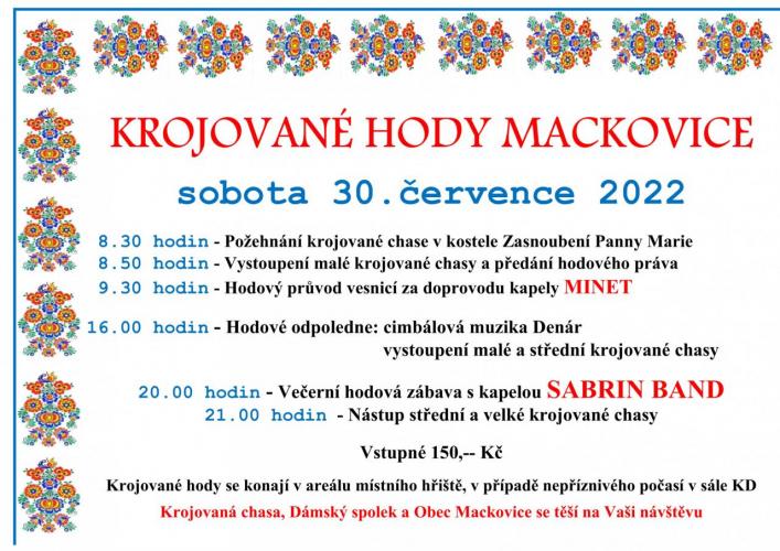 Krojovaná chasa, Dámský spolek a Obec Mackovice srdečně zvou na tradiční krojované hody.