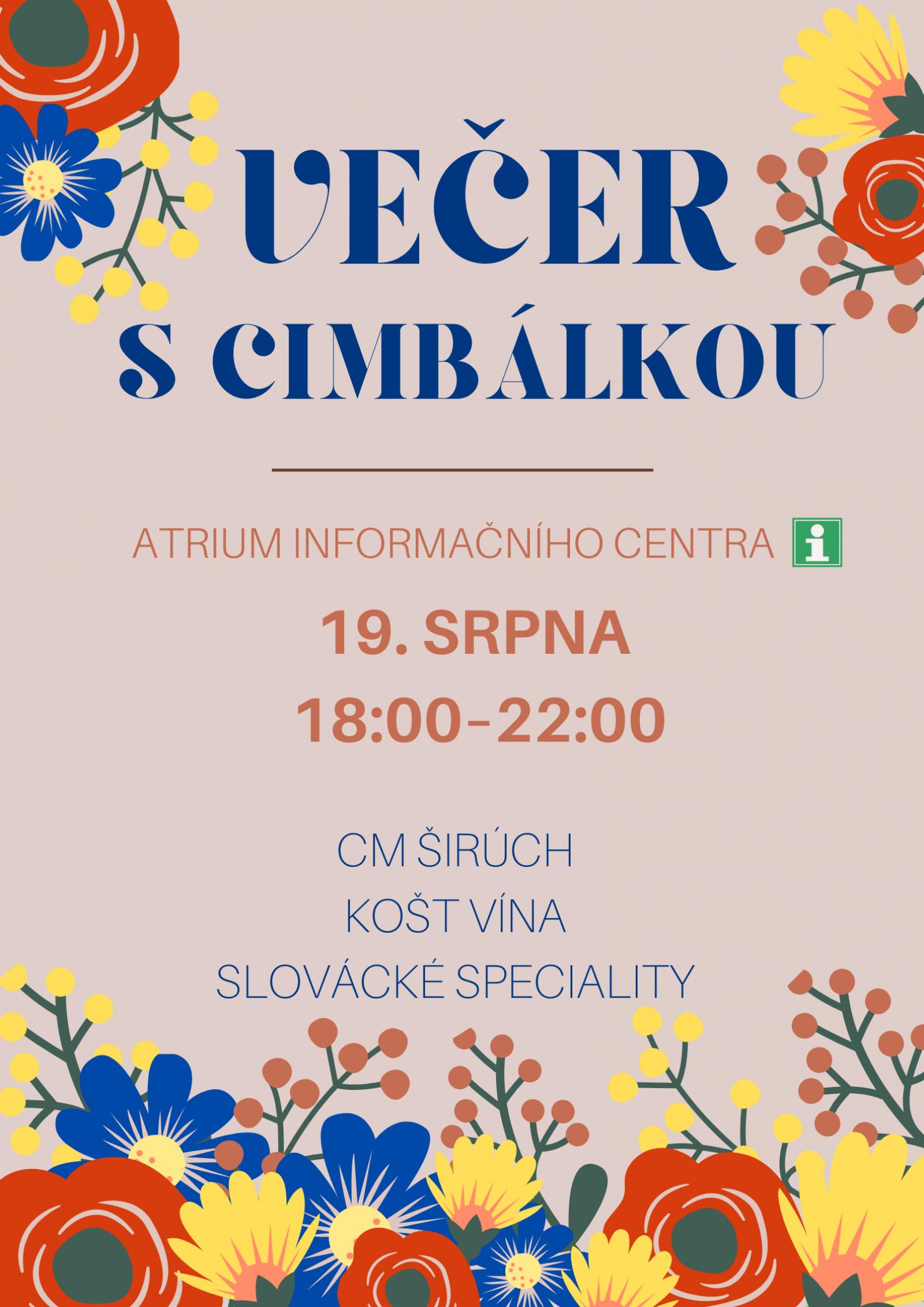 Přijďte si při pohárku dobrého vína zazpívat a zatančit s cimbálovou muzikou Širúch. Celý večer se ponese v tradičním slováckém stylu. Chybět nebude ochutnávka tradičních pokrmů, dobrého vína, tanec a zpěv.