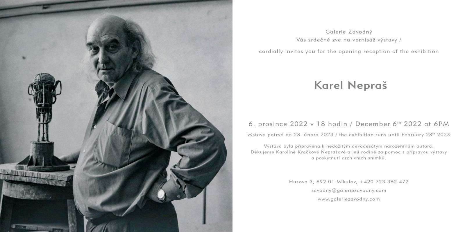 Výstava Karla Nepraše /1932 – 2002/ v Galerii Závodný by chtěla prostřednictvím výběru z uzavřeného díla připomenout nedožité devadesáté narozeniny autora.