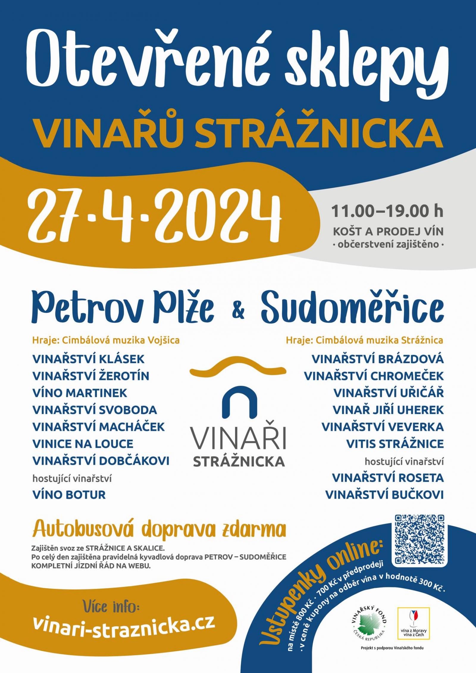 Kromě již známých se zde nově budou prezentovat dvě další vinařství: strážnická Vinice na Louce Radima Chromečka a Vinař Jiří Uherek ze Sudoměřic. Občerstvení zajištěno.