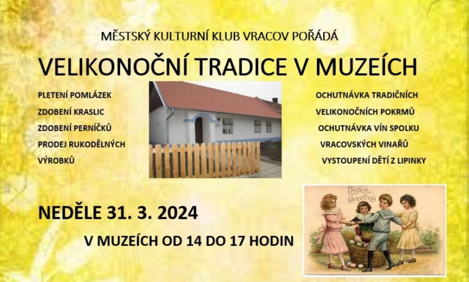 Městský kulturní klub Vracov pořádá akci "Velikonoční tradice v muzeích" v neděli 31. března od 14:00 do 17:00 ve vracovských muzeích.