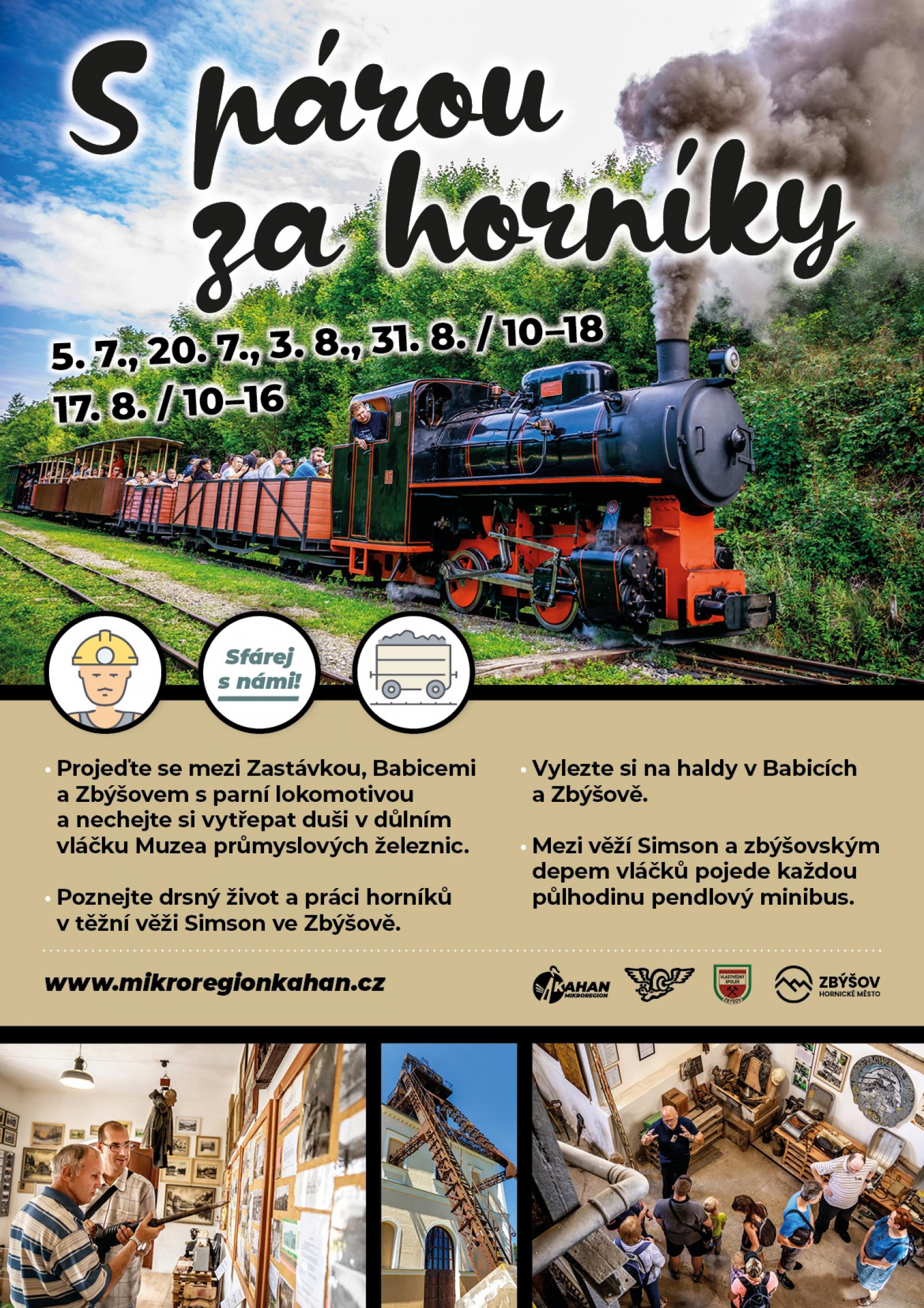Přijďte si ji připomenout jízdou po bývalé důlní vlečce mezi Zbýšovem, Babicemi a Zastávkou. Dnes je zde úzkokolejka opečovávaná členy Muzea průmyslových železnic. Nachystané budou samozřejmě ony "páry", tedy parní lokomotivy, ale také důlní vláček - největší kostitřas široko daleko.