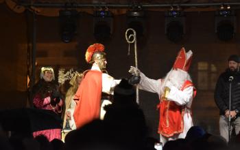 Tradiční začátek adventní doby v Ivančicích s průvodem sv. Mikuláše, sv. Martina, sv. Lucie a sv. Barbory na koních.