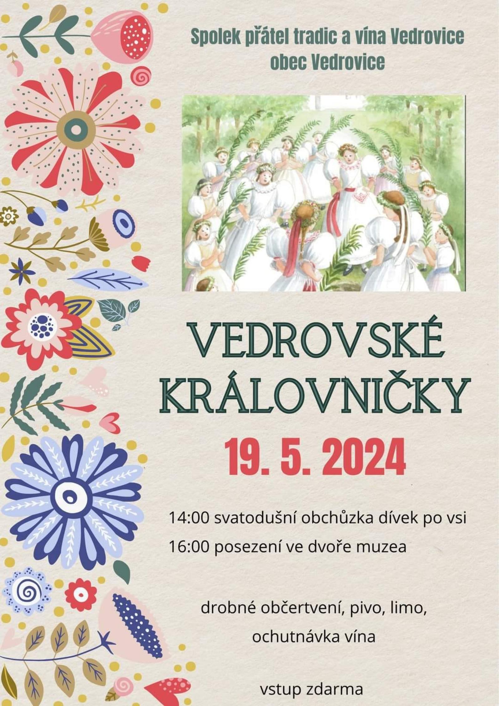 Spolek přátel tradic a vína a obec Vedrovice srdečně zvou na Vedrovické královničky v neděli 19.5.2024.
