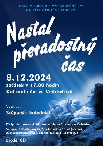Přijďte se o druhé adventní neděli vánočně naladit na koncertě Štěpánských koledníků ve Vedrovicích v sále Kulturního domu od 17 hodin.