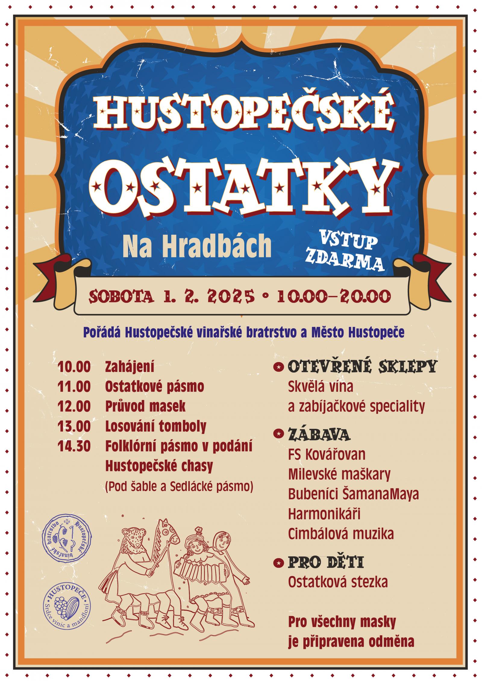 Nenechejte si ujít tradiční akci se spoustou zábavy v novém kabátě. Bývalý masopust převzaly ostatky. Na ulici Na Hradbách se můžete těšit na zabíjačkové speciality, otevřené sklepy místních vinařů, tombolu nebo průvod nejen Milevských maškar.