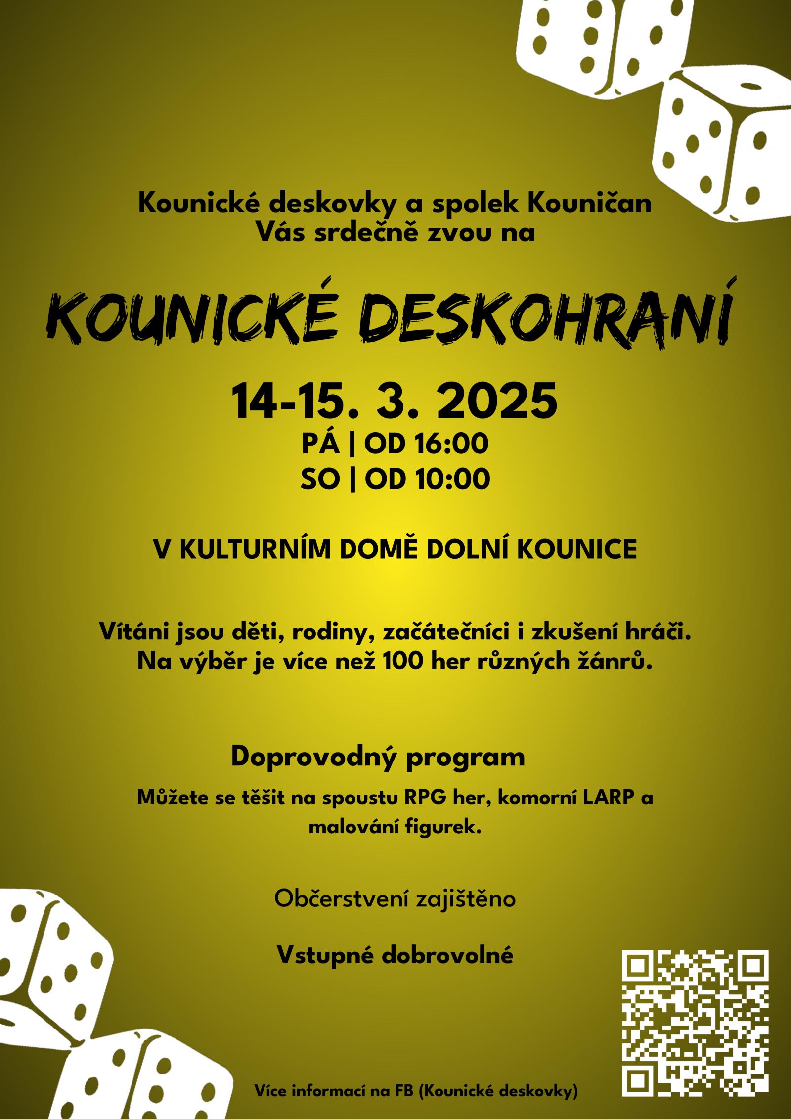 Deskohraní je určeno pro širokou veřejnost, děti, rodiny s dětmi, začínající i zkušené hráče. Můžete se těšit na více než stovku her ověřených titulů i několika RPG her se skvělými vypravěči a komorní LARP!