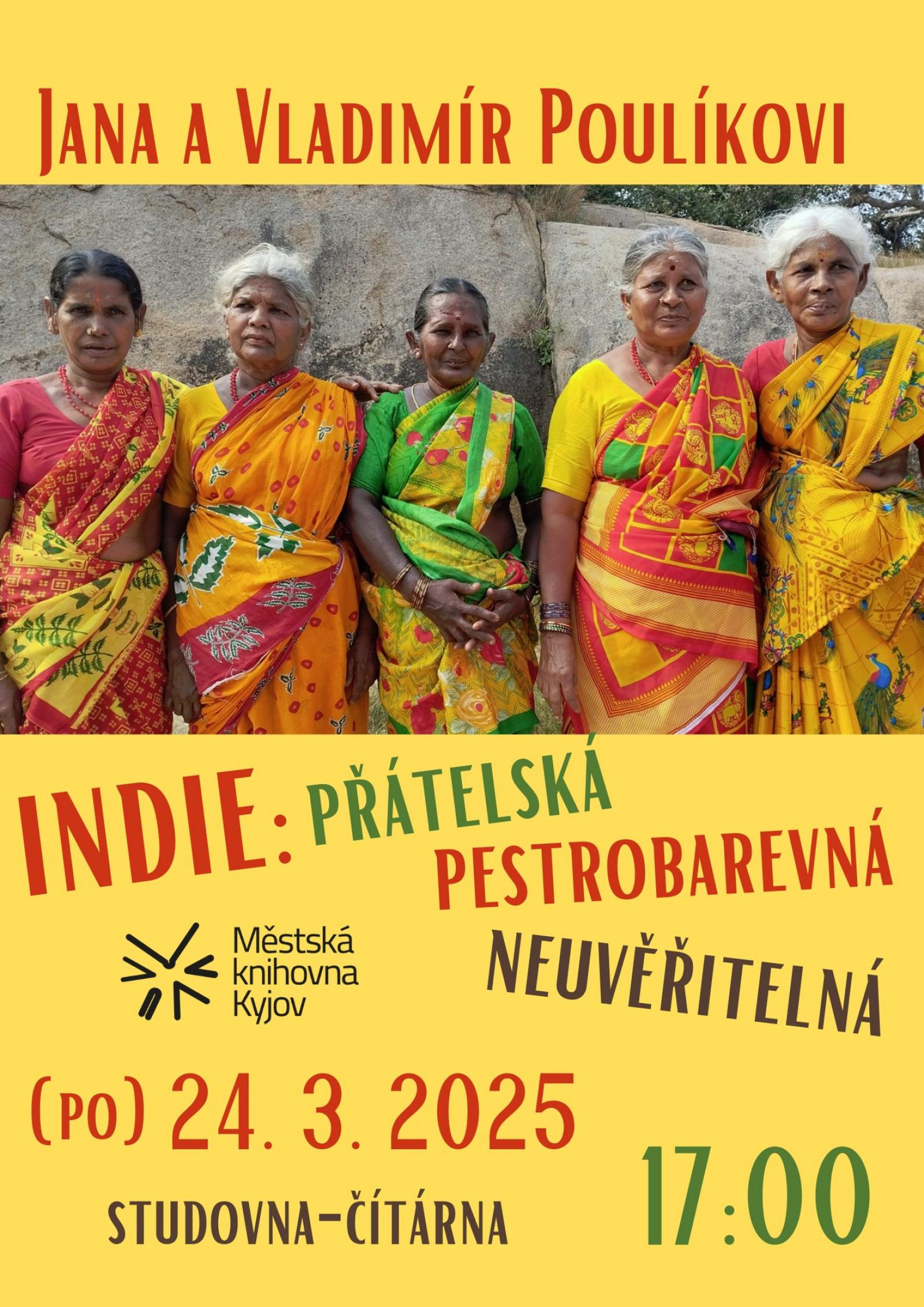 Městská knihovna Kyjov vás srdečně zve na besedu Jana a Vladimíra Poulíkových. Tentokrát na téma „Indie: přátelská, pestrobarevná, neuvěřitelná".