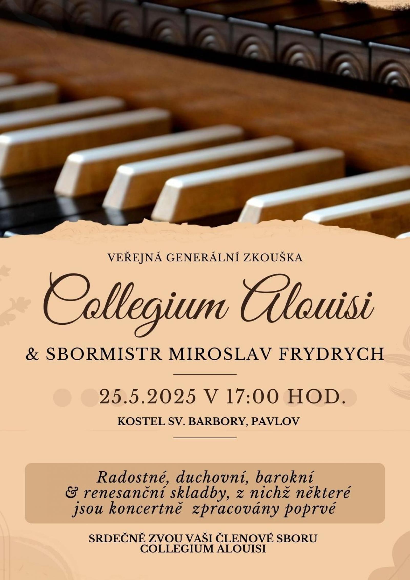 Veřejná generální zkouška koncertu pěveckého sboru Collegium Alouisi se sbormistrem Miroslavem Frydrychem v Pavlově.