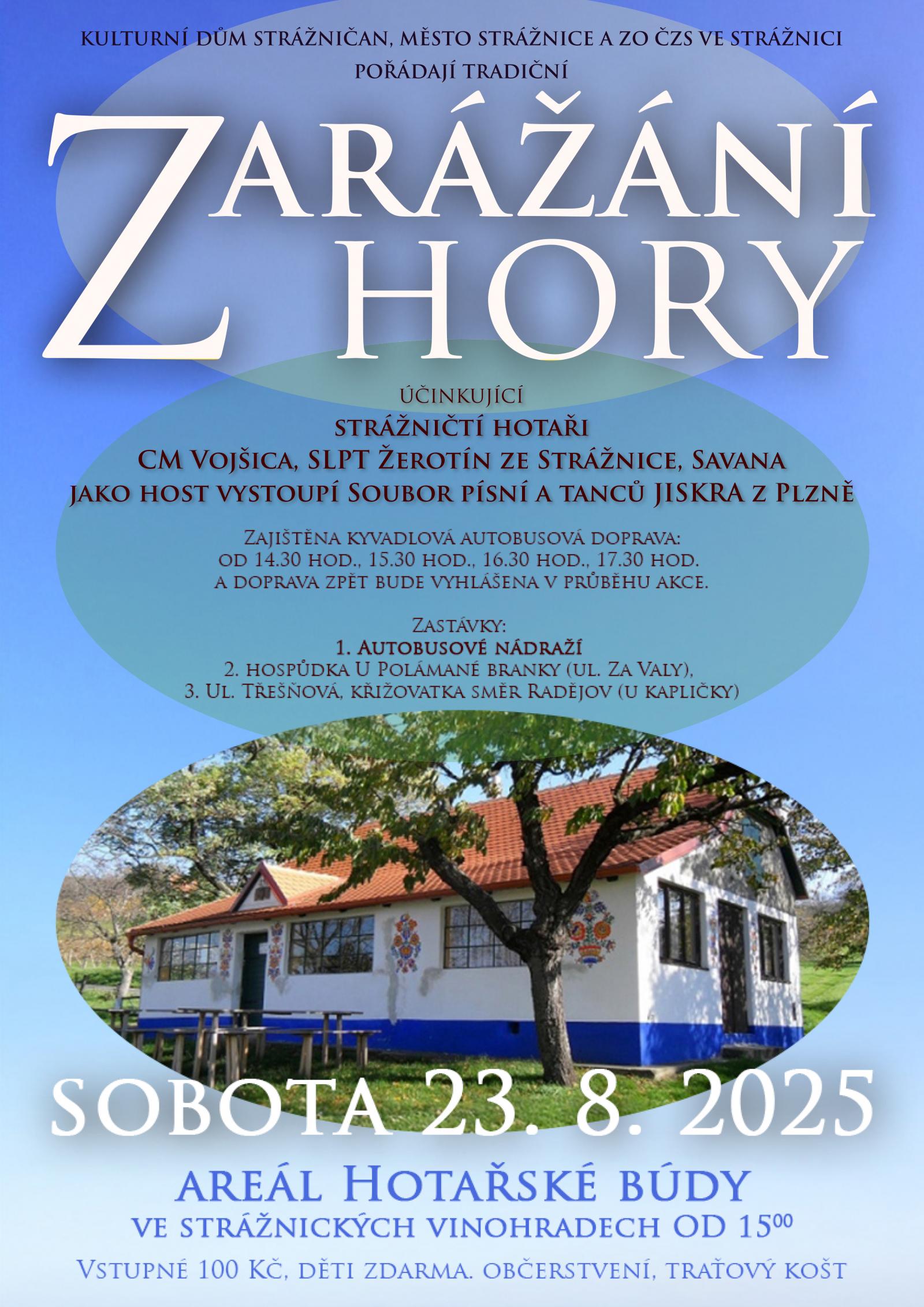 Kulturní dům Strážničan, Město Strážnice a ZO ČZS ve Strážnici pořádají tradiční Zarážání hory na Hotařské búdě ve strážnických vinohradech.