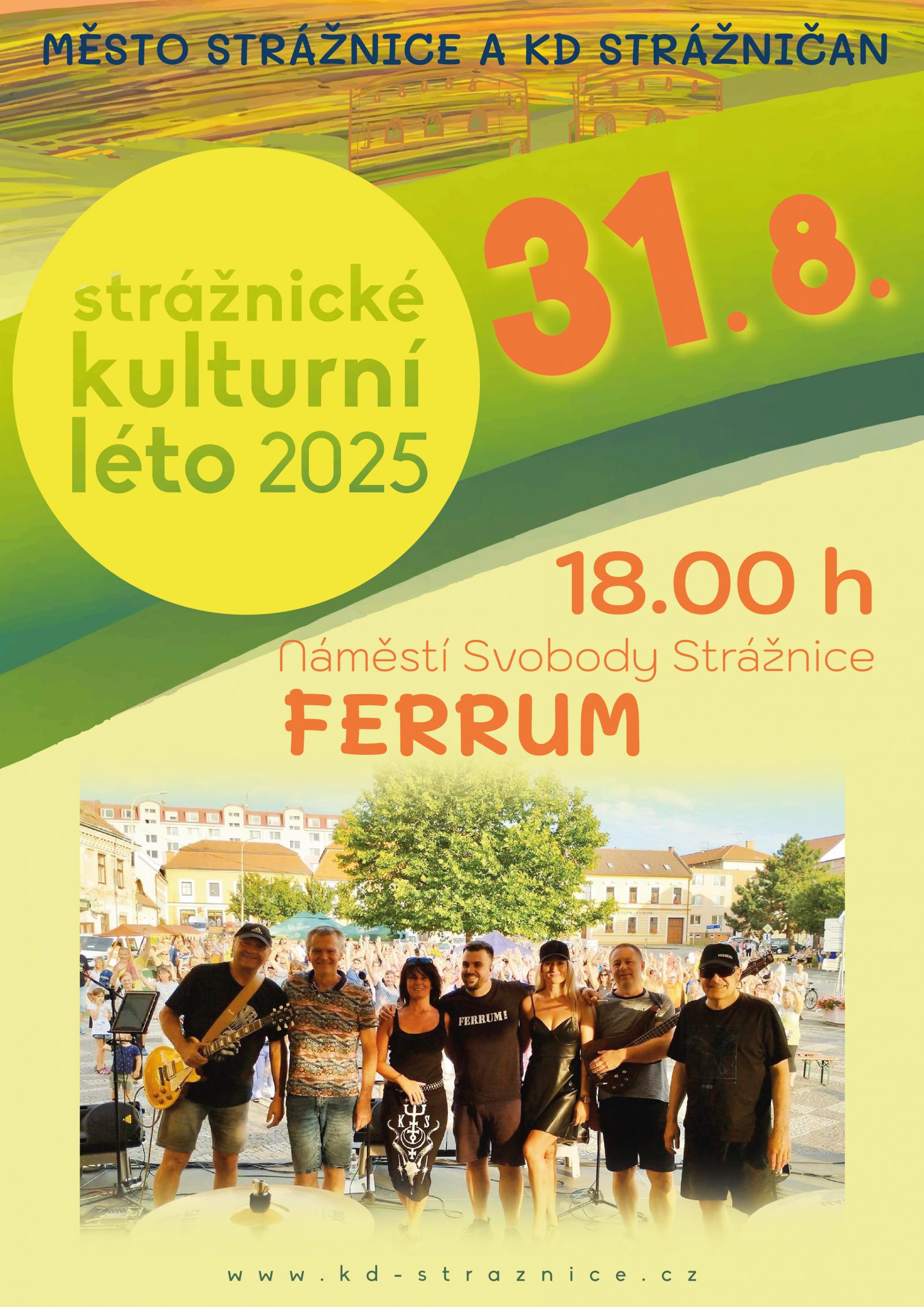 Hudební skupina Ferrum rozezní strážnické náměstí svou rockovou muzikou! Tato energická rocková kapela je charakteristická silnými vokály a jedinečnými kytarovými riffy, které nenechají nikoho v klidu.