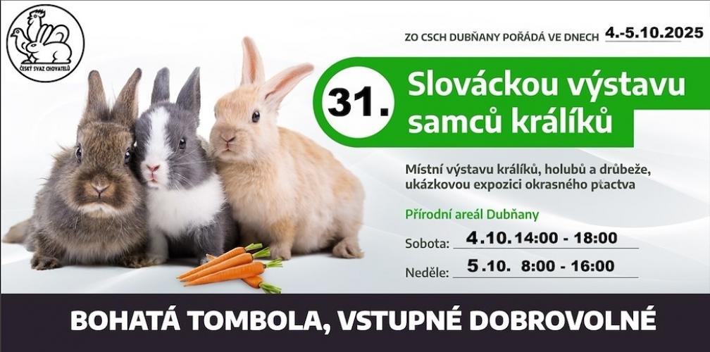 ZO CSCH Dubňany pořádá místní výstavu králíků, holubů a drůbeže i ukázkovou expozici okrasného ptactva.