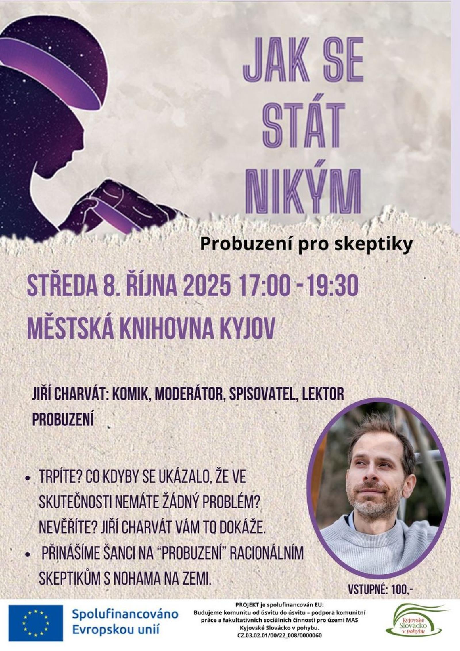 Zpochybněte realitu svých problémů s Jiřím Charvátem (stand-up komikem, spisovatelem, moderátorem a lektorem probuzení). Humor, nadhled a šance vidět svět jinak.