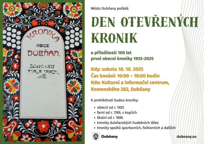 Jste srdečně zváni do KIC v Dubňanech na Den otevřených kronik.