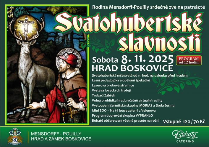 Patnáctý ročník Svatohubertských slavností nabídne v sobotu 8. 11. 2025 na hradě v Boskovicích program pro všechny věkové kategorie.