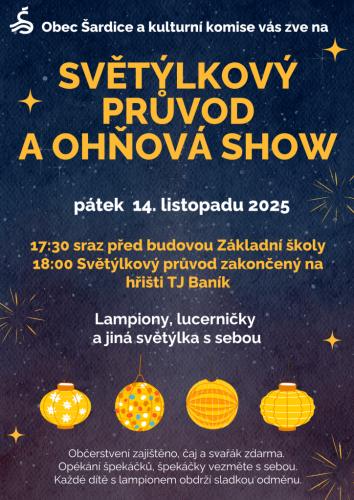 Průvod vyjde od budovy ZŠ na hřiště. Průvod bude zakončen ohňovou show. Chybět nebude opékání špekáčků (vezměte s sebou), čaj a svařák.
