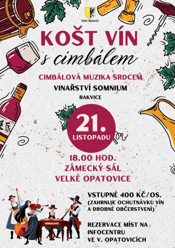 Srdečně Vás zveme do Zámeckého sálu ve Velkých Opatovic na ochutnávku vín z vinařství Somnium Rakvice při cimbálové muzice Srdcem.