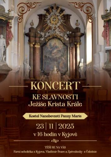 Srdečně vás zveme na koncert ke Slavnosti Krista Krále. Vystoupí farní scholička z Kyjova, Vladimír Švarc a Zpěvulenky z Čeložnic.