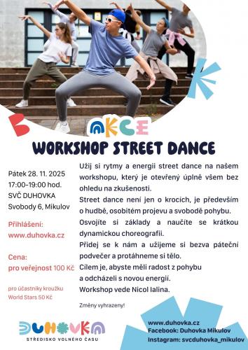 Středisko volného času Duhovka pořádá workshop street dance v Mikulově.