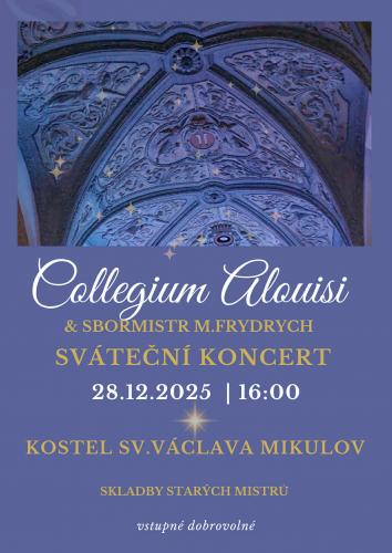Sváteční hudba starých mistrů v podání sboru Collegium Alouisi pod vedením sbormistra Miroslava Frydrycha se uskuteční 28. prosince od 16.00 hodin v kostele sv. Václava v Mikulově.