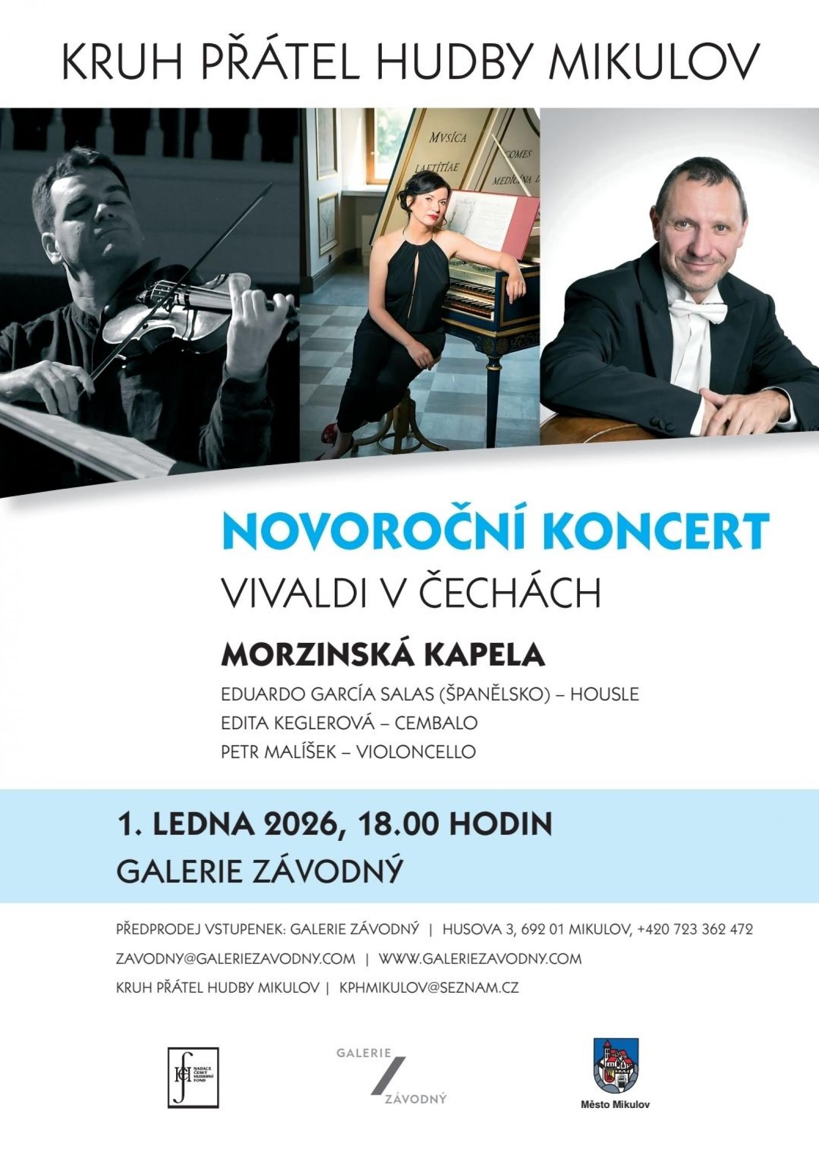 Novoroční koncert představí Morzinskou kapelu ve složení katalánského houslisty Eduarda García Salase, cembalistky Edity Keglerové a violoncellisty Petra Malíška.