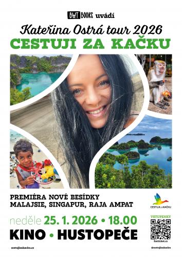 Kateřina Ostrá – cestovatelka, autorka cestopisných knih a travel blogu CESTUJI ZA KAČKU, vyráží na jedinečné turné, během kterého vás vezme na besídku plnou dobrodružství, smíchu a emotivních zážitků z cest.