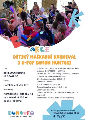 Středisko volného času Duhovka v Mikulově srdečně zve na dětský maškarní karneval s K-Pop Demon Hunters
