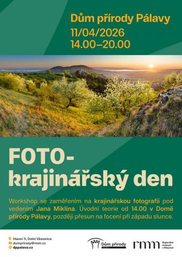 Úvodní teorie se bude konat v Domě přírody Pálavy v Dolních Věstonicích. Sejdeme se ve 14.00 hodin v Domě přírody Pálavy, kde proběhne úvodní teoretický blok se základními informacemi o technice, nastavení fotoaparátu, užitečném vybavení, plánování focení, komponování snímků i jejich editaci. V pozdním odpoledni se přesuneme na lokalitu k focení při západu slunce. (V případě mimořádně nepříznivých si vyhrazujeme možnost praktickou část zrušit)