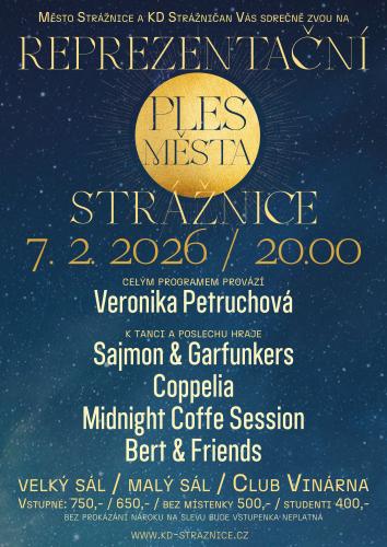 Ples bude letos probíhat v CELÉM KULTURNÍM DOMĚ! Těšte se na program nejen ve Velkém sále, ale i v Komunitním centru Patro a Clubu Vinárna! Celým večerem Vás provede známá tvář z Televizních novin, Veronika Petruchová!