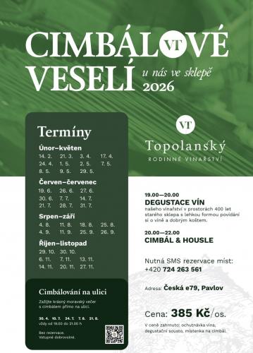 Vinařství Topolanský srdečně zve do Pavlova na večerní posezení s degustací vín a cimbálovou muzikou.