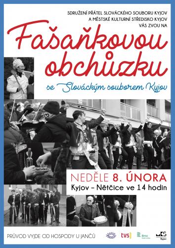 Na fašaňkovou obchůzku vás zve Slovácký soubor Kyjov a Městské kulturní středisko Kyjov.