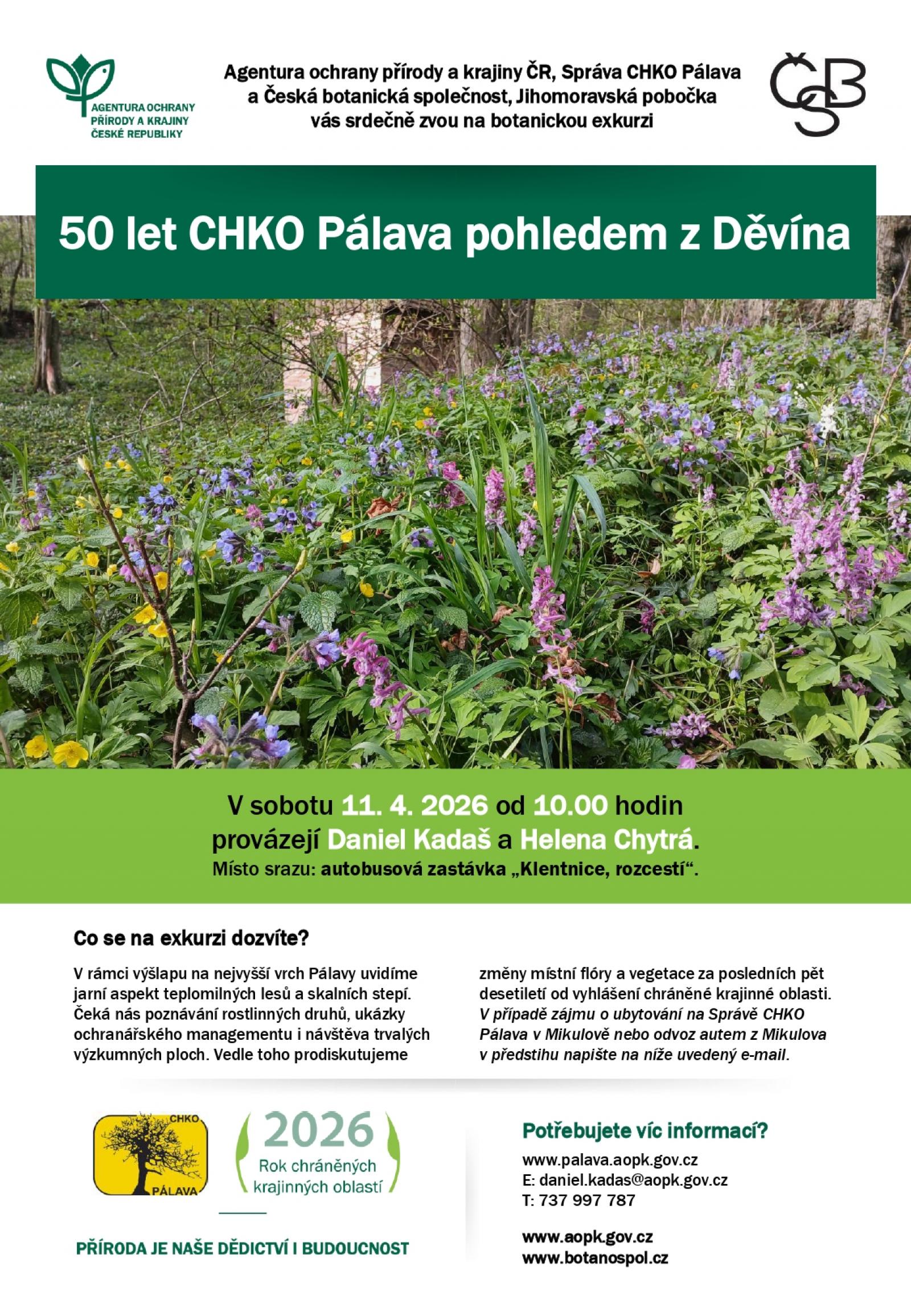 Agentura ochrany přírody a krajiny ČR, Správa CHKO Pálava a Česká botanická společnost, Jihomoravská pobočka vás srdečně zvou na botanickou exkurzi 50 let CHKO Pálava pohledem z Děvína.