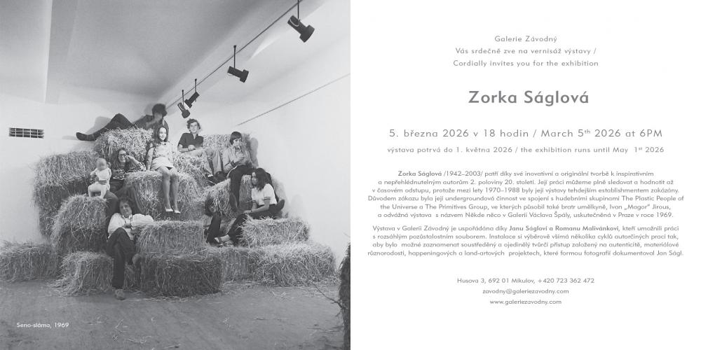 Zorka Ságlová patří díky své inovativní a originální tvorbě k inspirativním a nepřehlédnutelným autorům 2. poloviny 20. století. Výstava v Galerii Závodný je uspořádána díky Janu Ságlovi a Romanu Malivánkovi, kteří umožnili práci s rozsáhlým pozůstalostním souborem. Instalace si výběrově všímá několika cyklů autorčiných prací tak, aby bylo možné zaznamenat soustředěný a ojedinělý tvůrčí přístup založený na autenticitě, materiálové různorodosti, happeningových a land-artových projektech, které formou fotografií dokumentoval Jan Ságl.