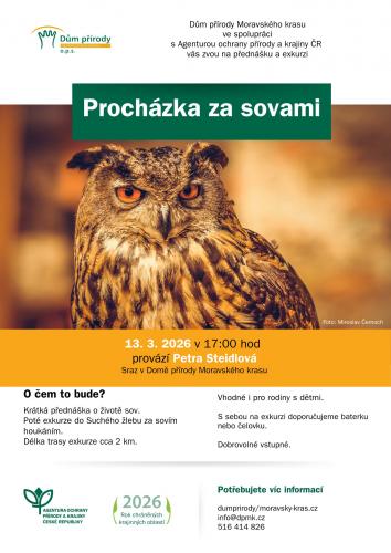 Nejprve vás čeká krátká úvodní přednáška v kinosále Dům přírody Moravského krasu a poté se společně vydáme do Suchého žlebu na procházku. Sovy sice neuvidíme zblízka, ale budeme naslouchat houkání sov v jejich přirozeném prostředí.