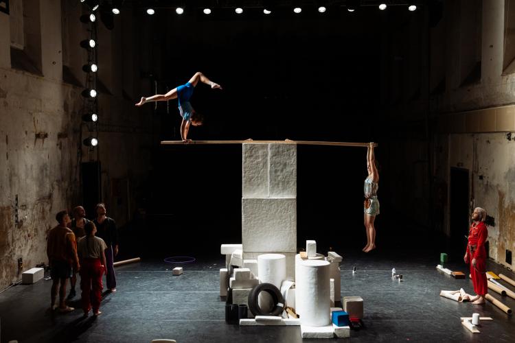 Tento experimentální projekt Cirku La Putyka a režiséra Thomase Steyaerta záměrně vykračuje z očekávání diváků. Zkoumá hranice lidské komunikace a vytváří napětí nejen skrze akrobatické výkony, ale i skrze minimalismus, ticho a statické obrazy. Scéna plná objektů, které performeři používají k budování i dekonstrukci světa kolem sebe, otevírá prostor pro představivost.