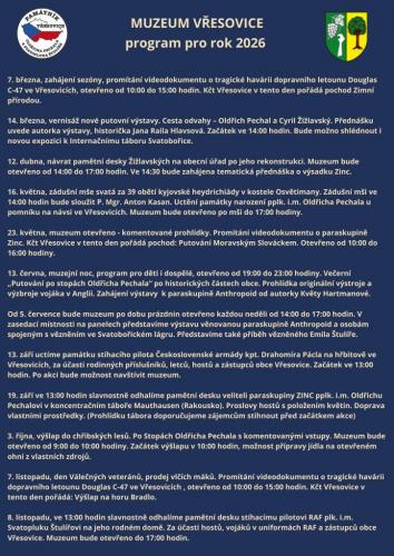 U příležitosti zahájení sezóny se v muzeu uskuteční promítání videodokumentu o tragické havárii dopravního letounu Douglas C-47. Současně se koná pochod Zimní přírodou, který pořádá KČT Vřesovice.