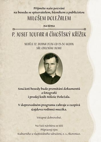 Beseda se spisovatelem a historikem Milošem Doležalem na téma o P. Josefu Toufarovi a číhošťském křížku. V doprovodném programu zahraje a zazpívá Gajdova rodinná muzika.