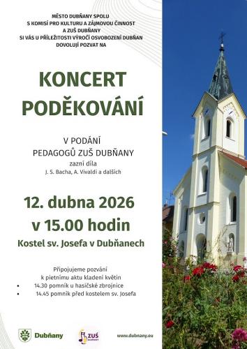Město Dubňany spolu s komisí pro kulturu a zájmovou činnost a ZUŠ Dubňany vás u příležitosti výročí osvobození Dubňan zvou na „Koncert poděkování" v podání pedagogů ZUŠ Dubňany.