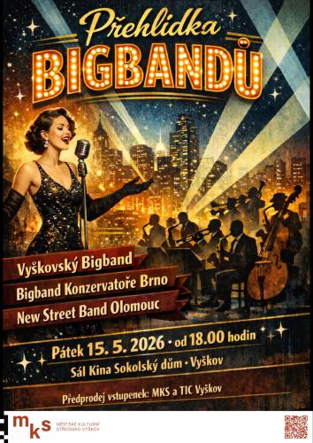 Na všechny diváky čeká Přehlídka bigbandů, kde se na jednom pódiu postupně představí Vyškovský Bigband, Bigband Konzervatoře Brno a New Street Band Olomouc, kteří spojí síly v hudebním večeru plném skvělé muziky. T