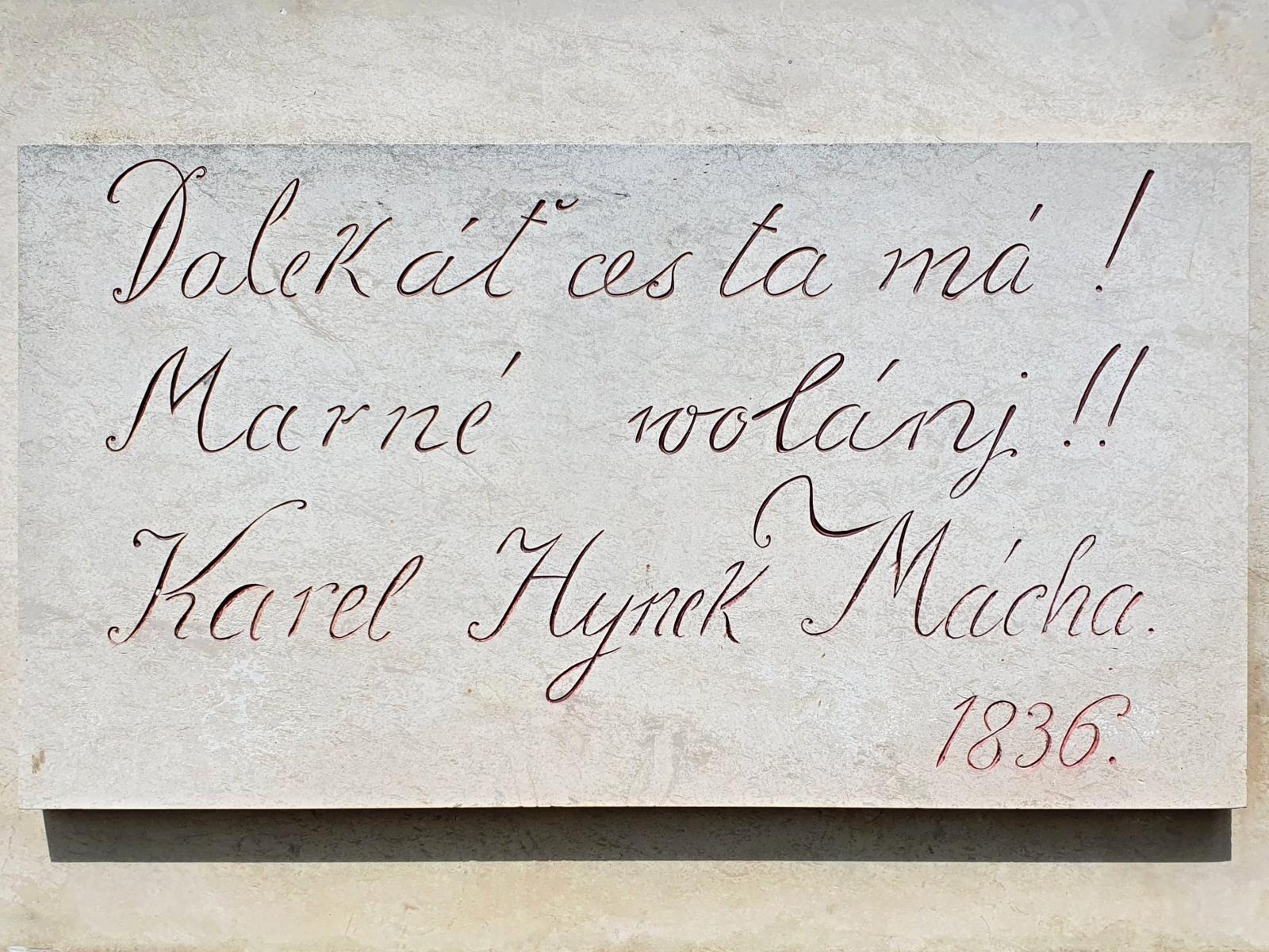 K mohutnému pomníku našeho slavného básníka míří od vlakové zastávky Adamov žlutá turistická značka okruhu Nový hrad. Než si na monumentu přečtete úryvky jeho díla a zábavné zápisky z vrcholové knihy, nastoupáte během necelých 5 km asi 200 výškových metrů. Ten výhled od pomníku však stojí za tu námahu. Pohlédnete až na Pálavu!