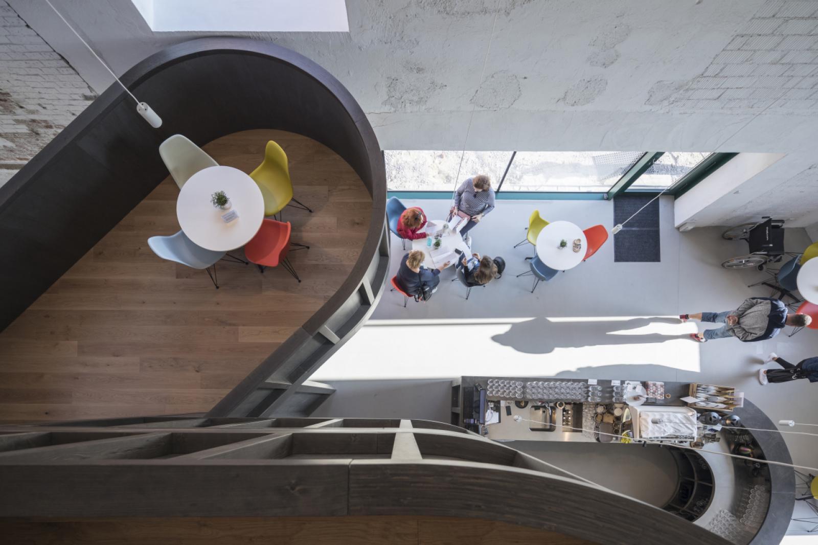 Nevzhlednou budovu vedle citlivě zrenovovaného pivovaru pojali Chybík+Krištof experimentálně. Zachovali jen vnější zdi a do sněhobíle strohého interiéru zakomponovali v několika výškových úrovních posezení v boxech z tmavého dřeva. Z asymetricky rozmístěných oken Enotéky vychutnáváte kromě vín a kávy výhledy na gotický chrám sv. Mikuláše starý přes 800 let. Při degustaci ve vedlejší místnosti nic nerozptyluje vaše smysly. Se samoobslužným systémem by the glass si užijete ochutnávání vín Znojemské vinařské podoblasti v malých degustačních dávkách podle své volby a sil (vzorků je hodně přes sto!).